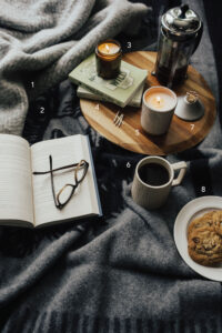 4 + 5 + 6 Hunker down with books like A Woman’s Guide to the Wild by PNW-based Ruby McConnell; a brightly scented candle; and coffee in this stoneware mug; all from Camelion Design.