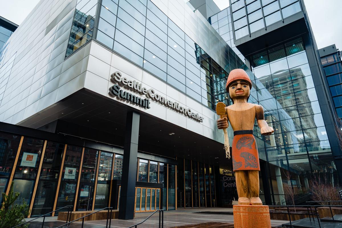 This magnificent LEED Platinum meeting space opened in early 2023, just 1½ blocks from the Convention Center’s similarly alluring Arch building. Dazzling features include the Hillclimb staircase, the 3,900 suspended planks of reclaimed wood, and an incomparable collection of artwork with many pieces created by artists with connections to the Puget Sound region.
