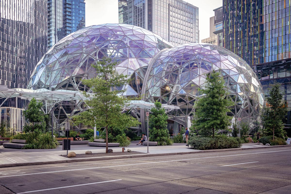 These three intersecting glass-dome conservatories opened on Amazon’s South Lake Union campus in 2018. Together, these spheres hold a diverse collection of more than 40,000 plants—many of them installed on a four-story living wall—as well as a restaurant and retail stores.
