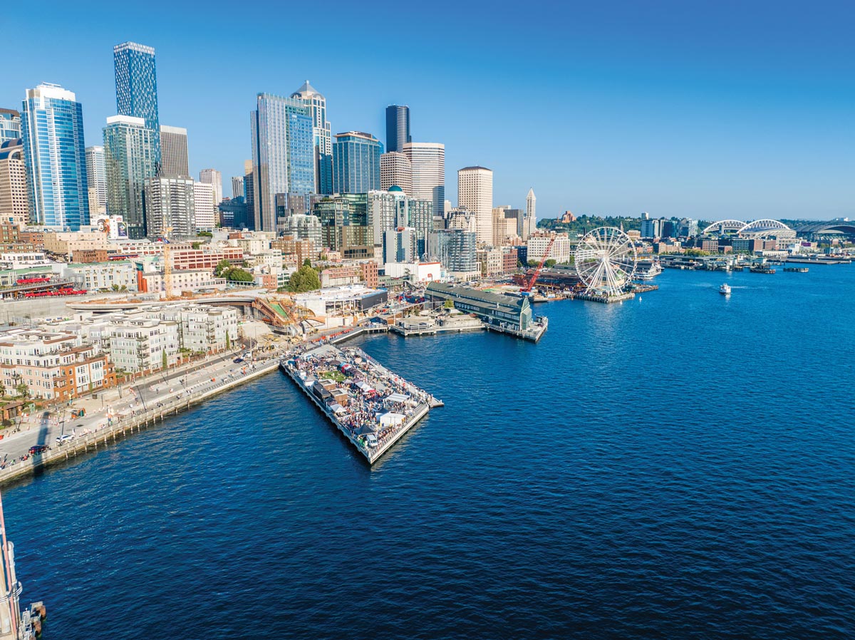 As you visit Seattle’s dynamic downtown waterfront, watch for some exciting improvements. In fact, if it’s been a few years since your last visit, you may not recognize this vibrant, working neighborhood that’s been a key driver of the city for more than 150 years. In 2019, the 60-year-old and 60-foot-tall Alaskan Way Viaduct double-decker freeway was removed, with traffic rerouted through a new tunnel beneath downtown. “The viaduct formed a massive barrier between downtown and our beautiful waterfront,” says Angela Brady, Director of the Office of the Waterfront & Civic Projects. “Removing it provided downtown with a once-in-a-generation opportunity to reconnect with its natural environment thanks to a new 20-acre Waterfront Park.”